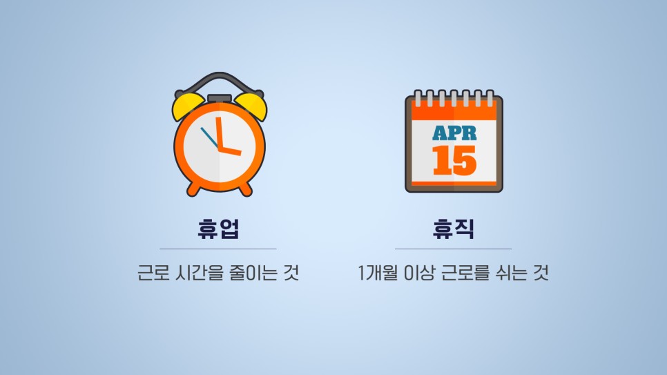 일하는 시간을 줄이거나 (휴업) 잠시 일을 쉬는 경우 (휴직)