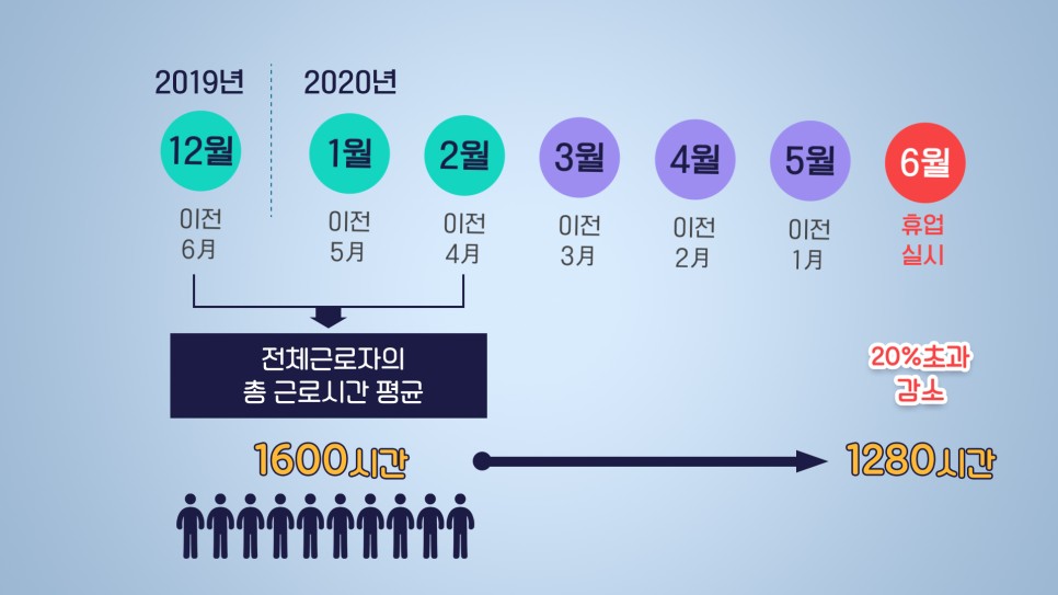 평균 근로시간의 20%를 초과한 시간을 줄이는 '휴업'을 어려워 하시는 경우가 많은데,