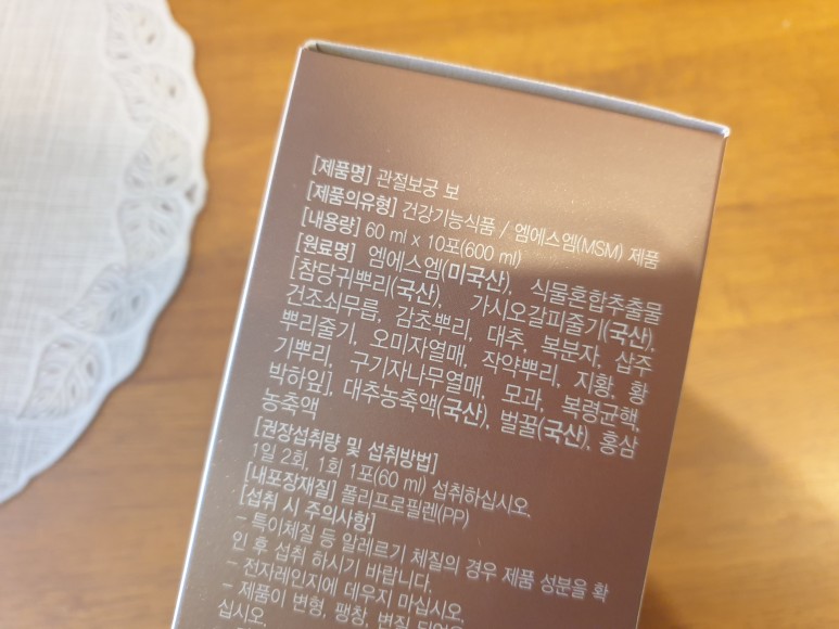 나뉘어 있더라고요. 마시게 되어 있는 액상형 보와 먹으면 되는 정제형 궁이 있어요. 이 두 가지에는 어떠한 차이가 있는지여러분께도 공유해 보도록 할게요.우선 보 같은 경우에는 관절에 통증을 감소할 수 있으며 연골 건강에도움이 된다고 하더라고요. 특히 좋은 영향을 준다는 한약재가 무려 17가지가 포함되어 있었고요.