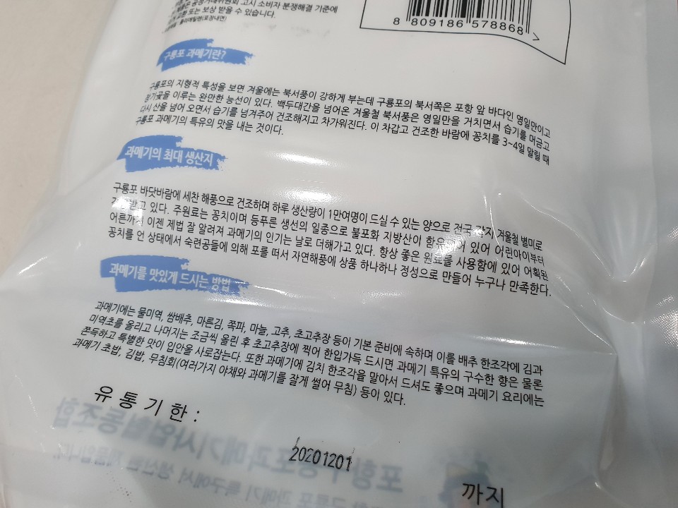 포장지 뒷면에 있는 과메기에 대한 내용인데요 제가 요약해 다시 글로 적어보겠습니다.