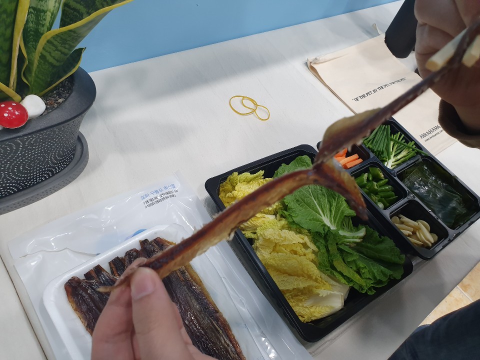 보통은 과메기의 비릿한 맛을 줄이기 위해 물미역, 배추, 마른김, 쪽파, 마늘, 고추 등 여러가지 야채를 과메기와 함께 싸서 먹지만 과메기 본연의 맛을 느끼고 싶으면 배추에 마른김과 미역초를 올리고 초고추장에 찍어 한입가득 먹으면 더욱 더 맛있게 먹을 수 있다고 합니다. 또, 김치와 같이 먹어도 별미라고 하네요!!