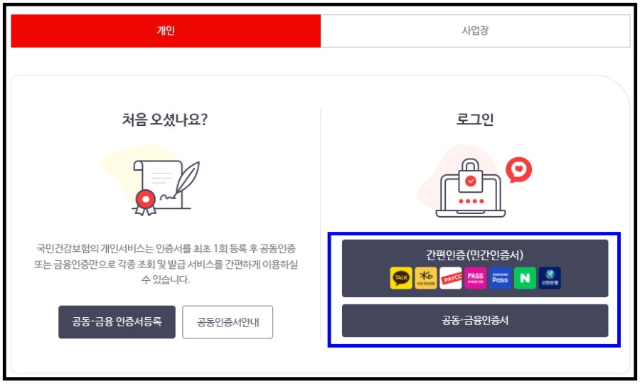 - 아래 개인인증 로그인창이 나오면 본인에게 맞는 방식으로 인증
