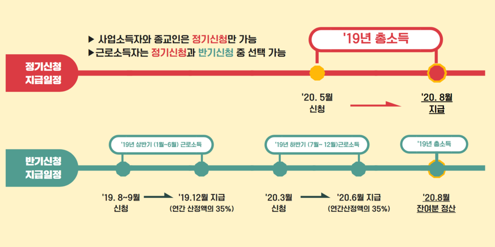 * 반기분은 각각 연간 근로장려금의 35% 지급, ’20. 8월 지급 시 잔여분 정산