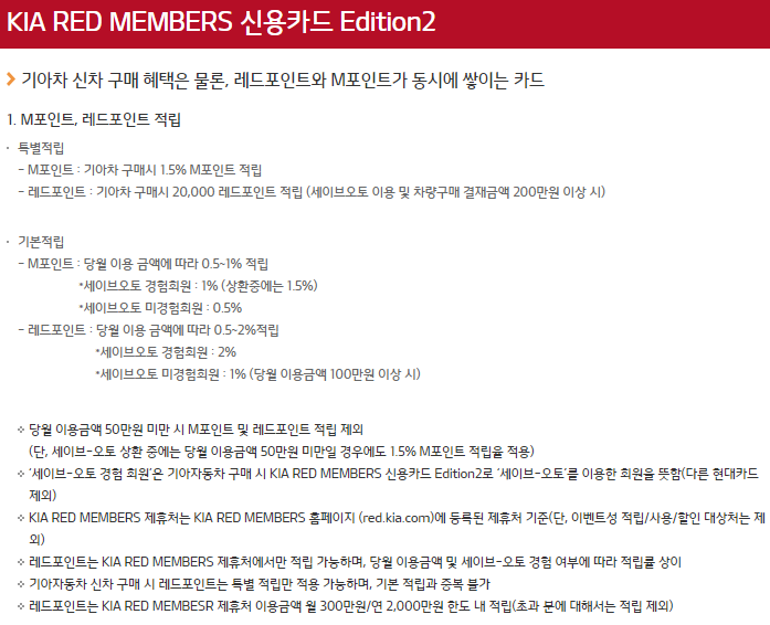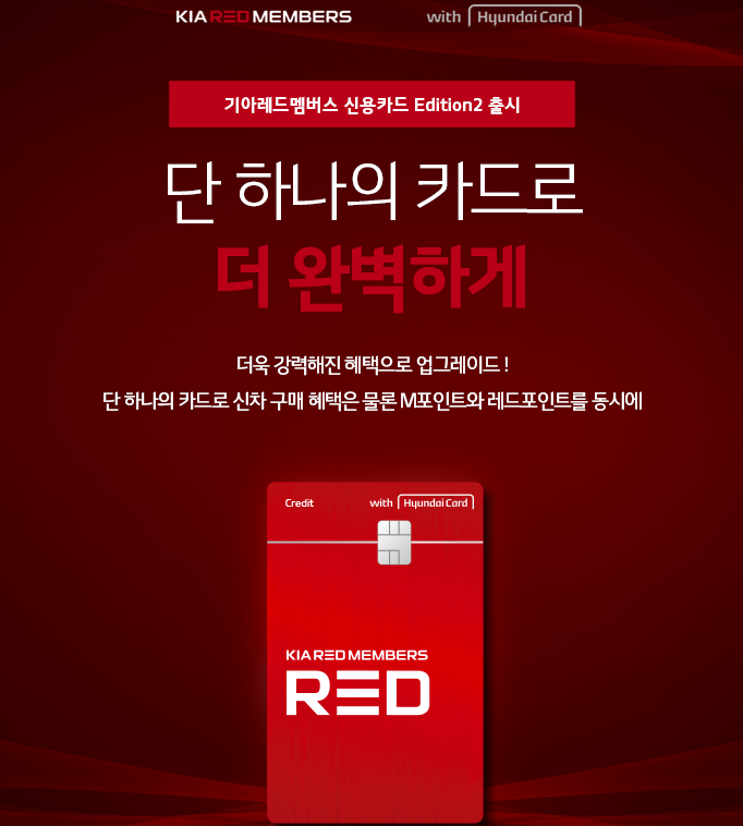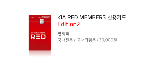 이번에 새로 나온 기아 레드 멤버스 신용카드 에디션2는 기존 기아 레드 멤버스 신용카드 이용 고객들의 의견을 적극 수렴하여 고객들이 더욱 많은 혜택을 받을 수 있도록 개선한 것이 특징입니다.