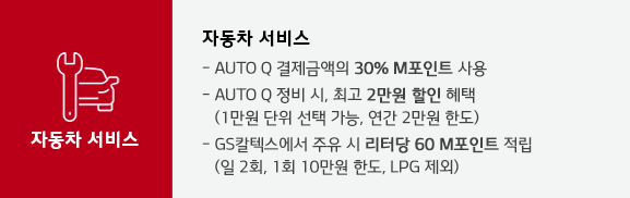 또, 신차 구매 혜택은 물론 당월 이용금액이 50만원 이상일 경우에는 오토큐 정비 2만원 할인 쿠폰 제공, GS칼텍스 리터당 60포인트 적립 등의 특별 혜택도 제공된다고 하니 하나 만들어놔도 괜찮을 것 같습니다.