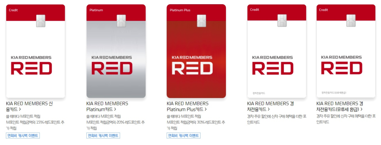 기아차는 이번 기아 레드 멤버스 신용카드 에디션2 출시 및 1월에 선보인 전기차 전용 신용카드를 통해 승용 / SUV, 경차, 전기차 등 차종별로 맞춤형 혜택이 제공되는 전용 신용카드 라인업을 구축해서 고객 선택의 폭을 확대해 나간다는 방침이라고 합니다.