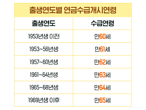 노령연금을 받을 수 있는 연령은 출생연도별로 달라지는데요. 수급연령이 되면 국민연금공단에 신청을 통해 노령연금을 받을 수 있습니다.