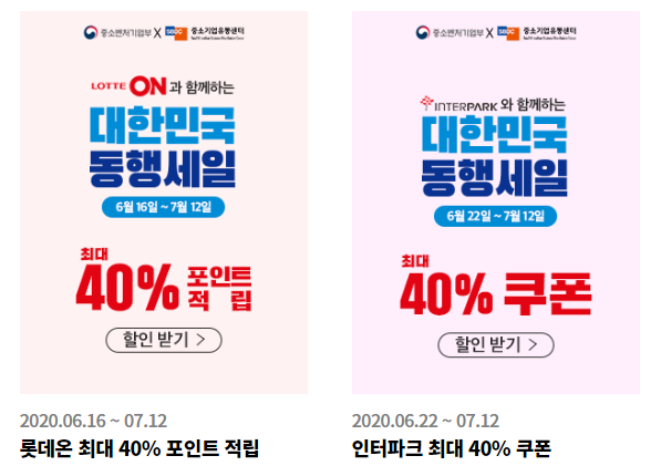 롯데온은 구매 고객에게 최대 40% 포인트 적립, 인터파크는 최대 40% 할인 쿠폰을 지급합니다.