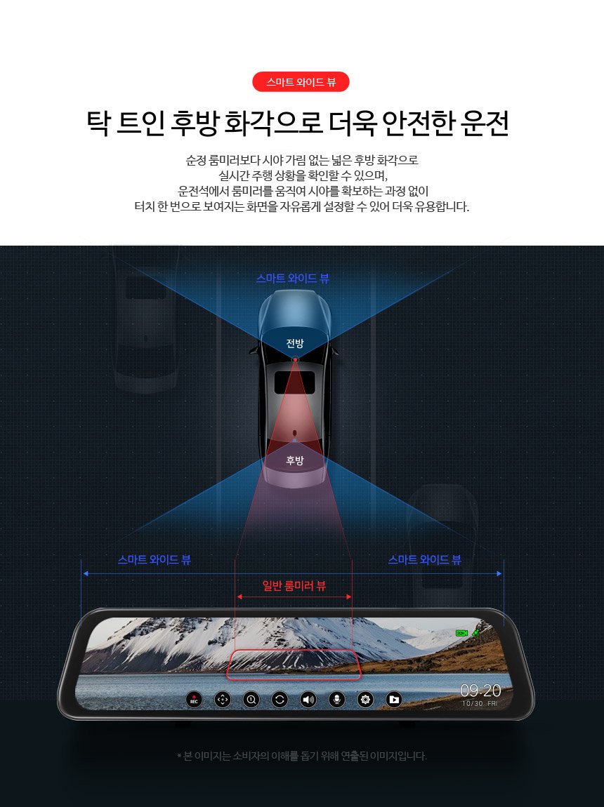뒷좌석의 짐이나 동승자로 인해 후방 시야 확보에 어려움이 있는 SUV 차량이나 초보운전자들에게 최적화된 제품으로, 일반 룸미러보다 넓은 화각으로 후방 사각지대를 최소화해 안전 운전이 가능하다네요.