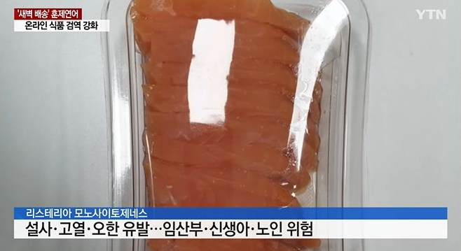 한국소비자원이 새벽배송 업체 5곳과 일반배송 업체 5곳에서 파는 메추리알장조림과 명란젓, 훈제연어 등 가공식품 30가지를 조사했는데요, 조사결과 훈제연어 10개 가운데 2개에서 나와서는 안 되는 식중독균인 리스테리아가 검출되었다고 합니다.