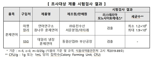 이 훈제연어는 가열하지 않고 포장만 뜯으면 바로 먹을 수 있는 식품이기 때문에 식중독균에 오염되면 더욱 위험할 수 있다고 합니다. 또, 한 제품은 일반 세균도 많아 부패하기 쉬운 상태였다고 합니다.