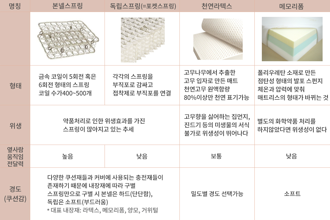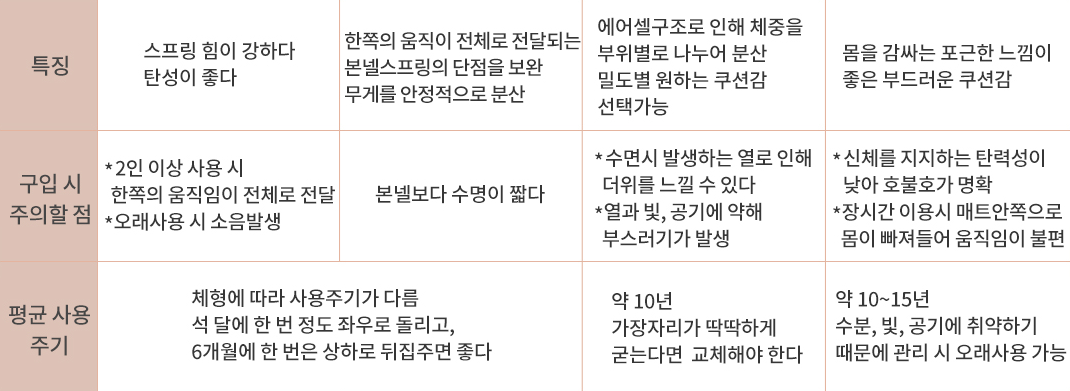 매트리스별 장단점