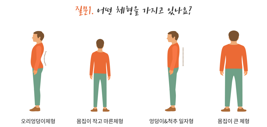 엉덩이가 작거나 척추가 일자형인 경우, 체형이 크다면, 미디엄~하드한 매트리스가 좋습니다. 추천 종류로는 라텍스, 메모리폼 고밀도 지지력 미디엄, 미디엄하드, 하드(80kg/m3 이상), 스프링 갯수가 많은 스프링매트 입니다.