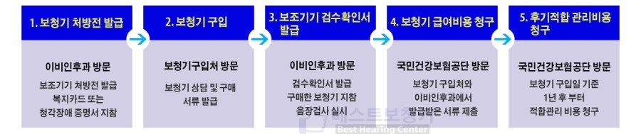 5. 보험공단에 등록된 보청기 판매업자에게서 보청기를 구입한다.