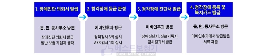 청각장애복지카드를 발급받기 위해서는 아래의 절차가 필요합니다.