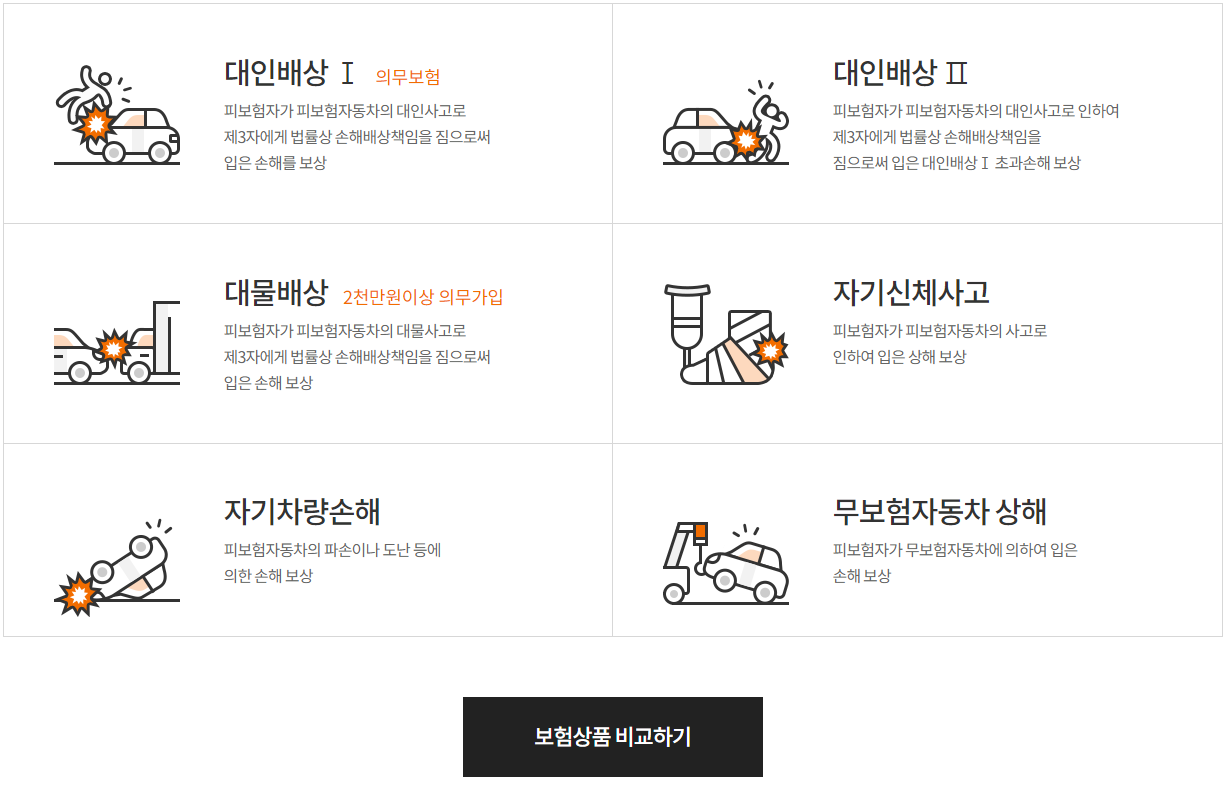 | 각 보험상품 보험료 비교하기 해당 보험 클릭 시 간단 비교 아래에서 확인해보세요▼ |
