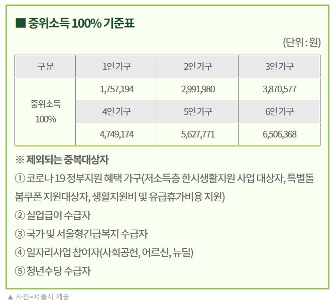 서울시는 중위소득 기준 100% 반영하여 이번에 지급하는 재난 긴급생활비에는 중위소득은 반영하지만 부동산, 금융 재산, 자동차 등은 반영하지 않기로 했다고 합니다.