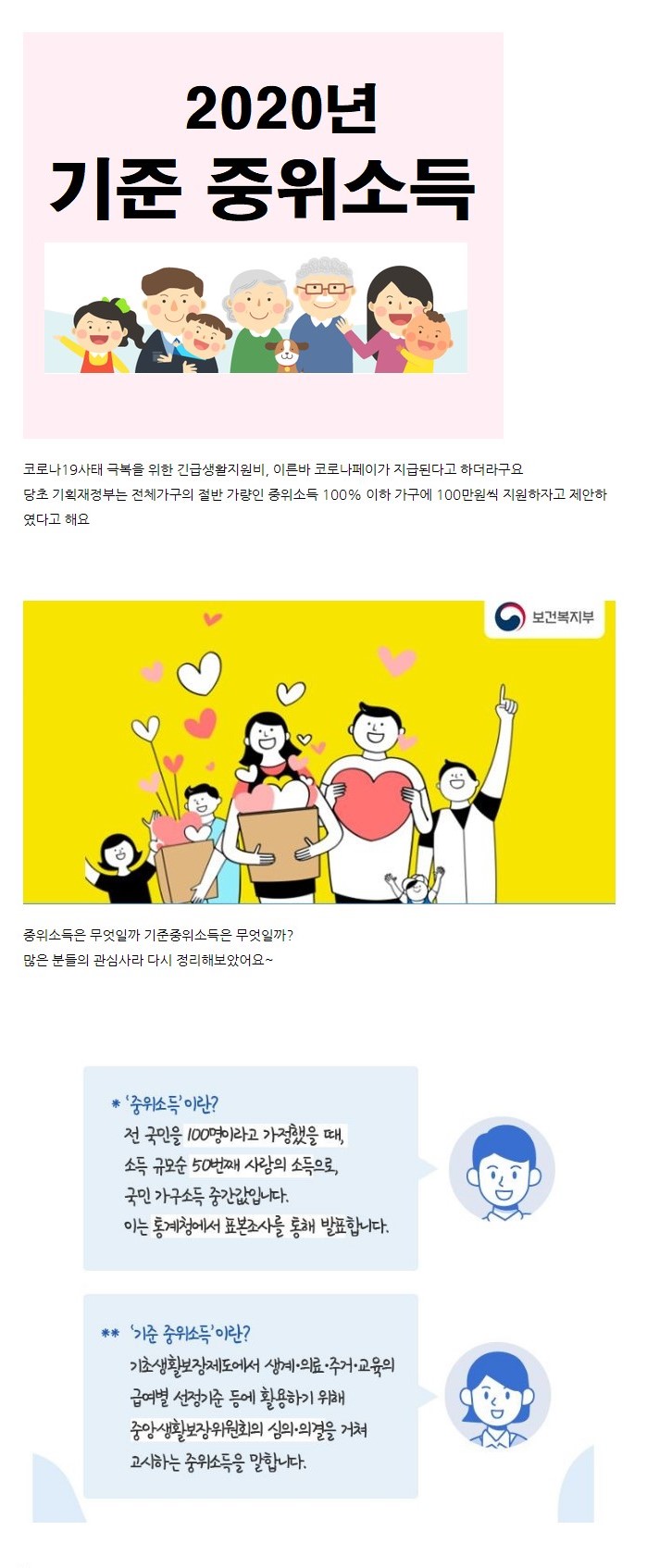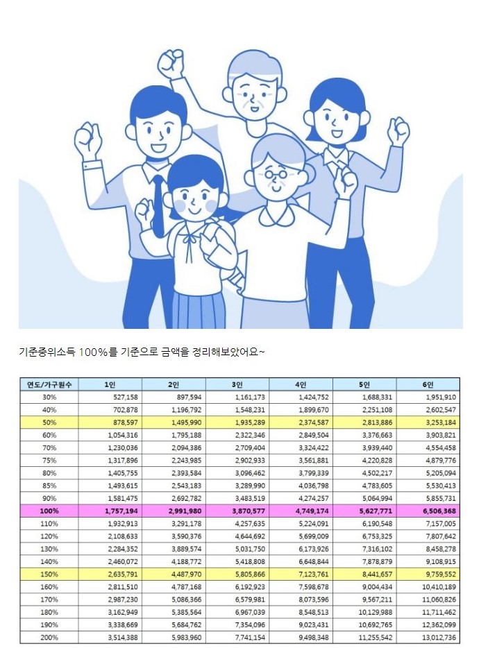 2020년 기준 중위소득 알아보아요.