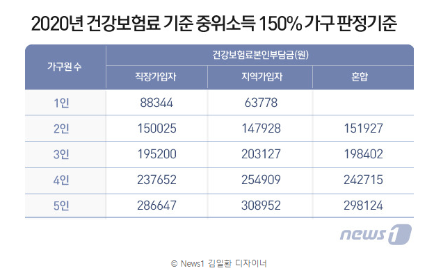 또한 여기에 근로소득뿐만 아니라 부동산, 전월세 보증금, 금융 재산, 자동차 등 주요 재산의 '소득환산액'을 합쳐 구하기 때문에 실제로 자가 기준 소득 산출은 복잡하니 건강보험료를 참고하면 편하겠습니다.
