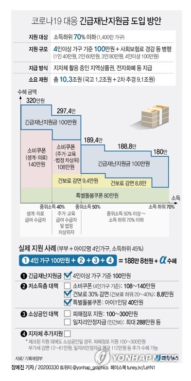 오늘 정부는 문재인 대통령 주재로 비상 경제 회의를 열고신종 코로나바이러스 감염증 대응을 위한 긴급재난지원금지급범위와 지원금을 확정하고 "4월 총선 직후 국회에서 추가경정예산이 통과되면 5월 중순 전에 지급되도록 최선을 다할 것"이라고 밝혔습니다.
