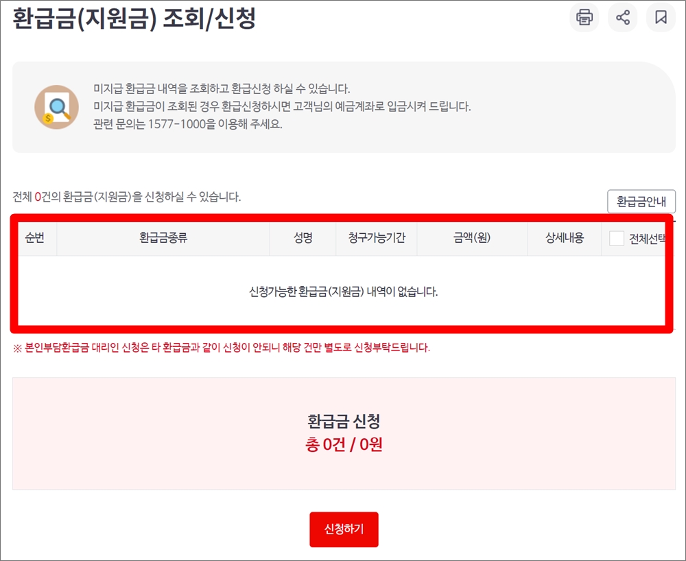 - 환급금 조회/신청 클릭