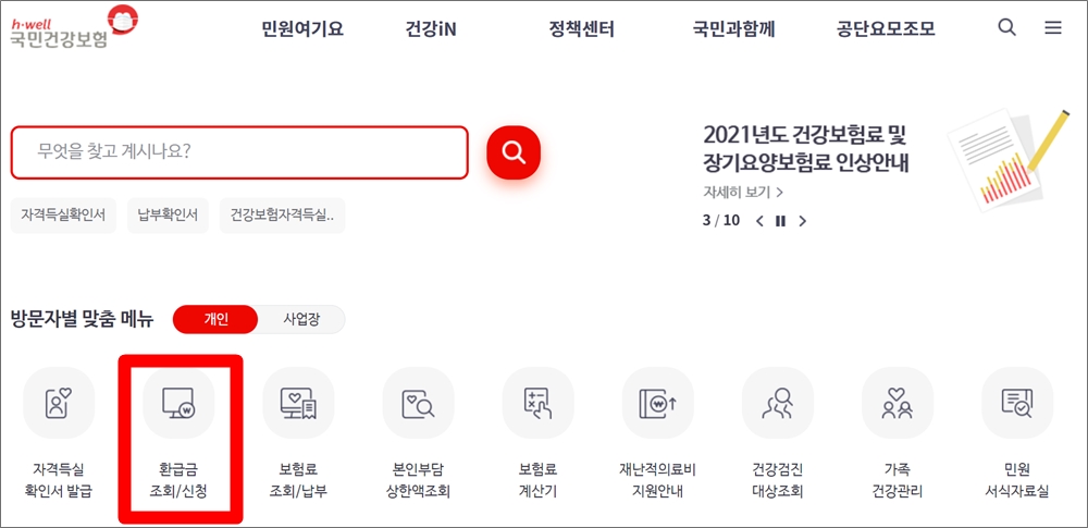국민건강보험 환급금 환급제도 신청방법