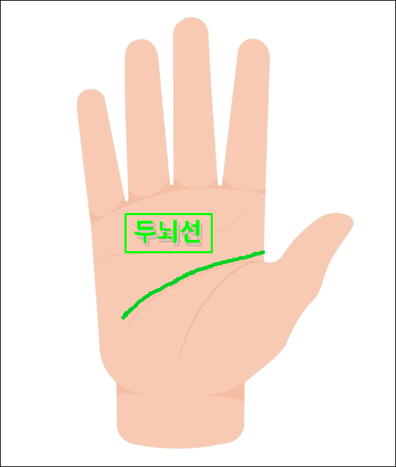 두뇌선은 마찬가지로 엄지와 검지 사이에서 곡선을 그리면서 내려옵니다.