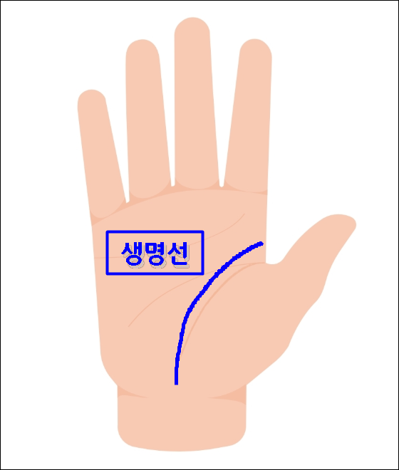 생명선은 일반적으로 손금에서 가장 많은 부분으로 엄지와 검지 사이에 내려오는 선입니다.