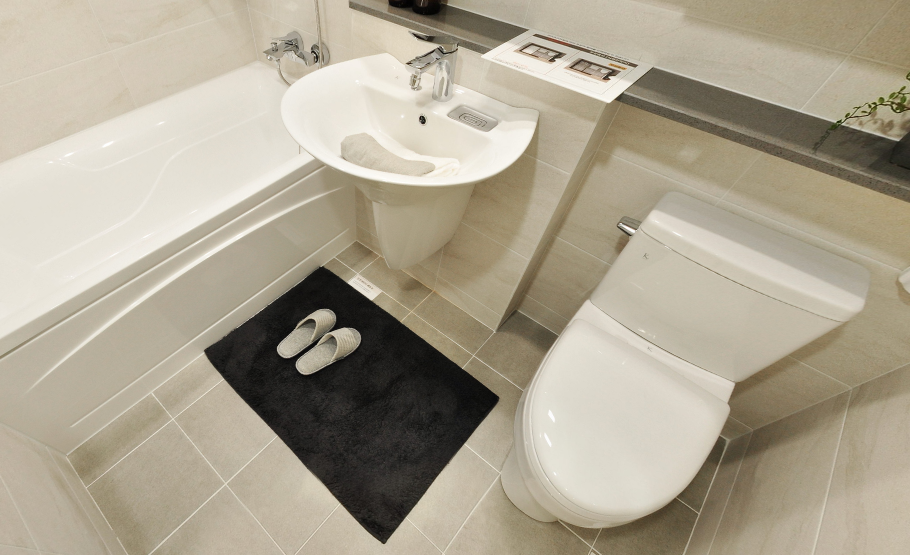 공용 욕실 공간인데, 욕조가 기본 들어가 있지만 샤워부스로 바꾸는 공사는 무상옵션으로 선택이 가능합니다. 욕조 크기가 큰사이즈가 아니고 요새는 욕조를 없애는 추세이기 떄문에 샤워부스를 설치하는것도 나쁘지 않다고 봅니다