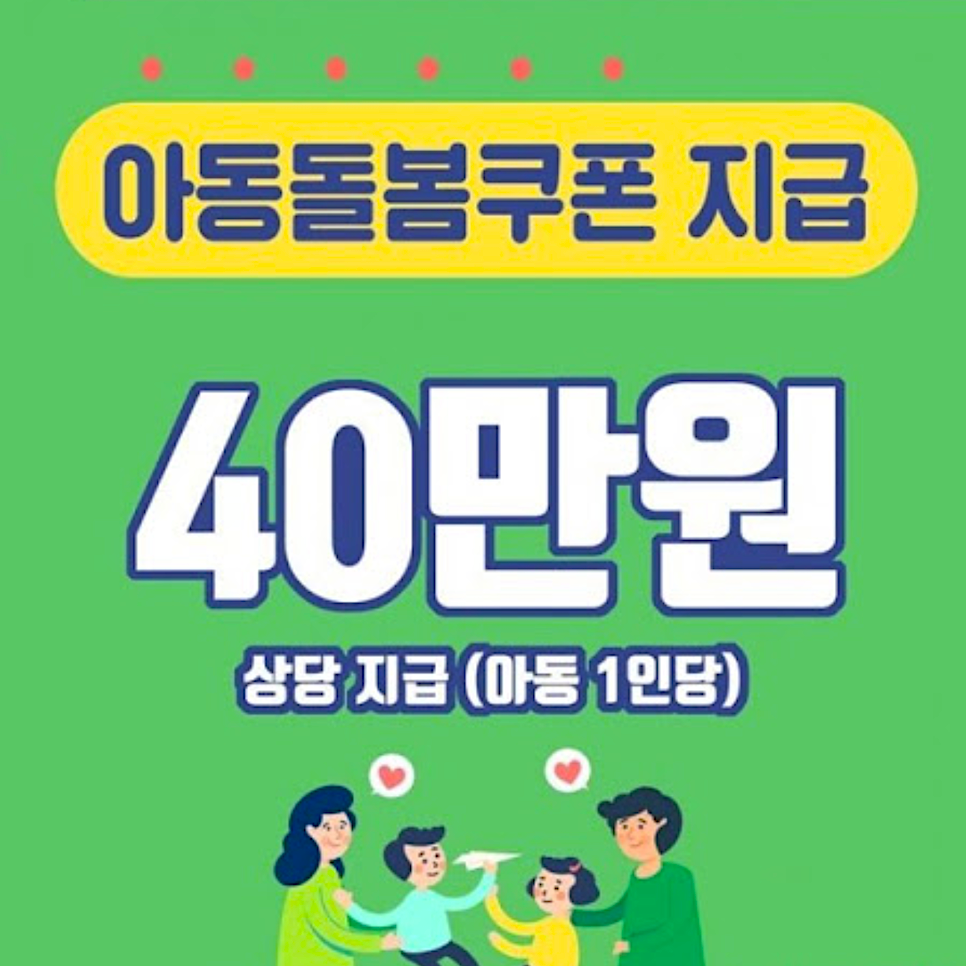 위에 포스터가 좀 복잡 그리고 이해 안가시는 분들을 위해서 다시 위에 통해 요약정리. 만 7세 아래 아동 1인당 40만원이 들어간다는 이야기입니다.
