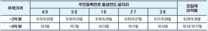 - 3억원 이하 차주는 9월 29·30일, 4억원 이하 차주는 10월 14·17일에 출생연도와 상관없이 신청