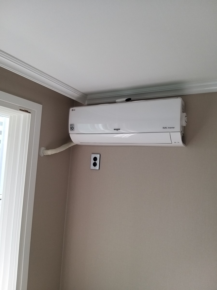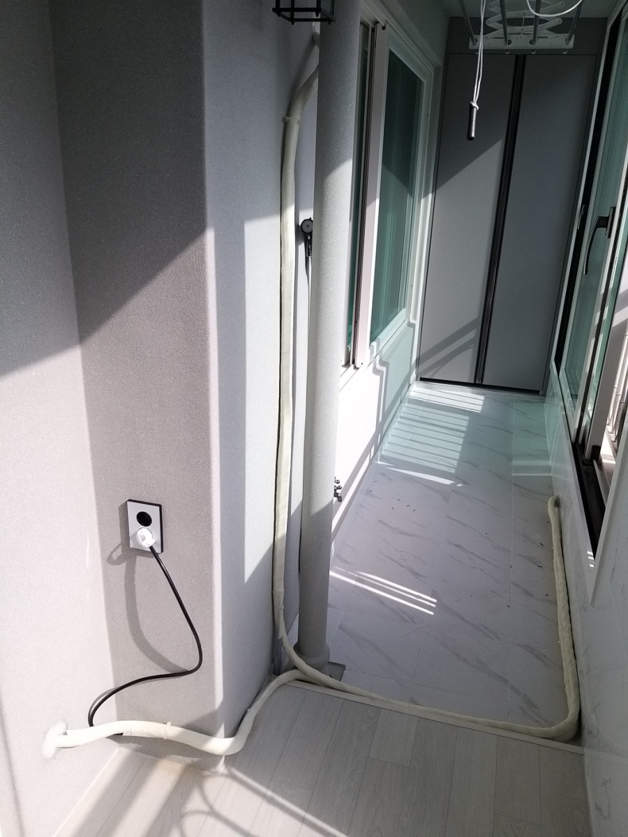 보통 아파트 같은 경우는 거의 2가지 방법을 사용합니다. 배관을 배란다 천정으로 보내느냐 아니면 아래 바닥으로 보내느냐. 그것 또한 제품이 스탠드냐? 아니면 벽걸이냐? 에 따라서 달라집니다.