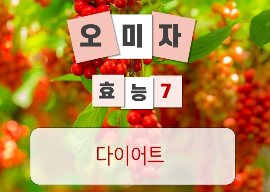 오미자는 칼로리가 낮고 주석산, 사과산과 비타민c가 풍부하기 때문에 체내의 지방을 잘 배출해 주어 다이어트에도 효과가 좋습니다!!