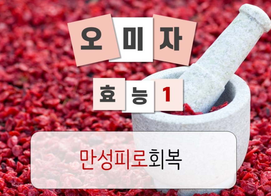오미자 안에 함유되어 있는 다답토젠이라는 성분은 육체 및 정신적 능력을 포함해 신체의 전반적인 에너지를 높혀주는 효과가 있어 만성피로회복은 물론 스트레스를 풀어주어 신체의 향상성을 유지 시켜주는 효과가 있습니다.