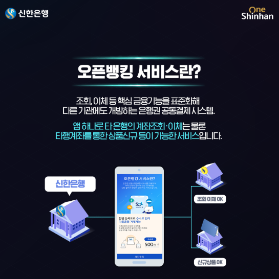 오픈뱅킹은 은행이 보유한 결제 기능과 고객 데이터를 제3자에게 공개하는 제도 인데요, 한군데의 은행 앱에서 자신의 모든 거래 은행 계좌를 등록해 편리하고 쉽게 금융 서비스를 이용할 수 있는 것입니다. 예를들면 그동안 A은행 앱을 사용한 금융소비자가 B은행 계좌에 대한 서비스를 이용하려면 별도로 B은행 앱을 이용해야 했지만 앞으로는 A은행 앱만으로도 B은행 계좌에서의 자금 출금과 이체 등을 할 수 있다는 얘기입니다.