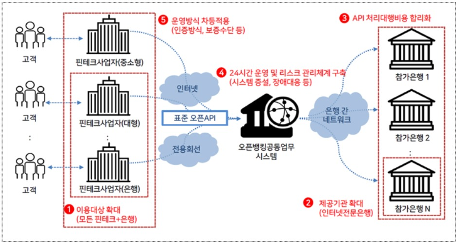 금융위는 현재 은행 위주인 오픈뱅킹 참가 금융회사를 내년부터는 상호금융과 저축은행 그리고 우체국등 제 2금융권으로 확대하는 방안도 검토하고 있다고 합니다. 또, 해킹이나 보이스피싱 등의 사고에 대비한 보안성 강화와 소비자 보호 방안에도 힘을 쓸 계획이라고 밝혔습니다.