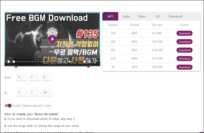 - mp3, mp4 다운로드 지원