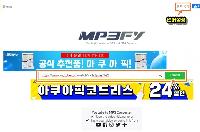 | 제목의 링크 클릭을 통해 해당사이트로 바로 이동 가능합니다.아래 사이트 모두 유튜브 영상을 MP3로 변환하는온라인 서비스의 사용법은 아래와 같이 유사합니다. |