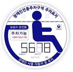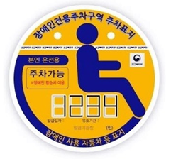 장애인 전용 주차구역은 보행상 장애인이 자동차를 편리하게 주차할 수 있는 전용 주차구역을 확보하고 사용토록하여 보행상 장애인의 주차편의 및 이동편의를 증진시키기 위해 꼭 필요합니다. 장애인 전용 주차구역 주차가능표지 부착 차량에 보행상 장애가 있는 사람이 탑승한 경우에만 주차가 가능한데요, 아래와 같은 표지가 차량 앞유리에 부착이 되어 있어야 합니다. 장애인전용주차구역 관련법령도 참고해보시길 바랍니다.