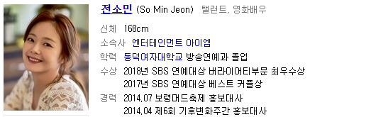 성격도 좋고 거기다 예쁘고 몸매까지 좋은 전소민씨!! 예능에서 뿐만 아니라 드라마나 영화에서도 자주 보았으면 좋겠습니다.