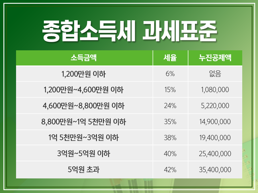 과세표준 구간에 따른 세율은 보기 쉽도록 표로 정리했으니 아래의 표를 참고해 주시기 바랍니다.