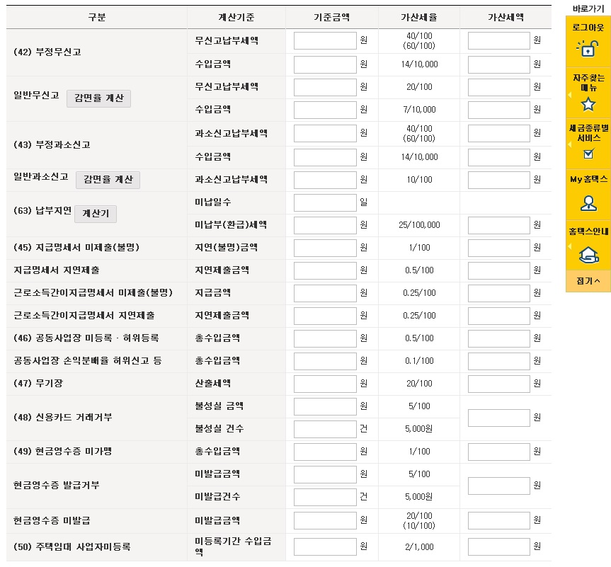 가산세 부분은 특별한 경우가 아니라면 기재할 것이 없을 것인데요. 간편장부대상자는 산출세액의 20%를 무기장가산세로 부담하게 되지만, 직전 과세기간의 수입금액이 4,800만 원 이하라면 관련이 없습니다.