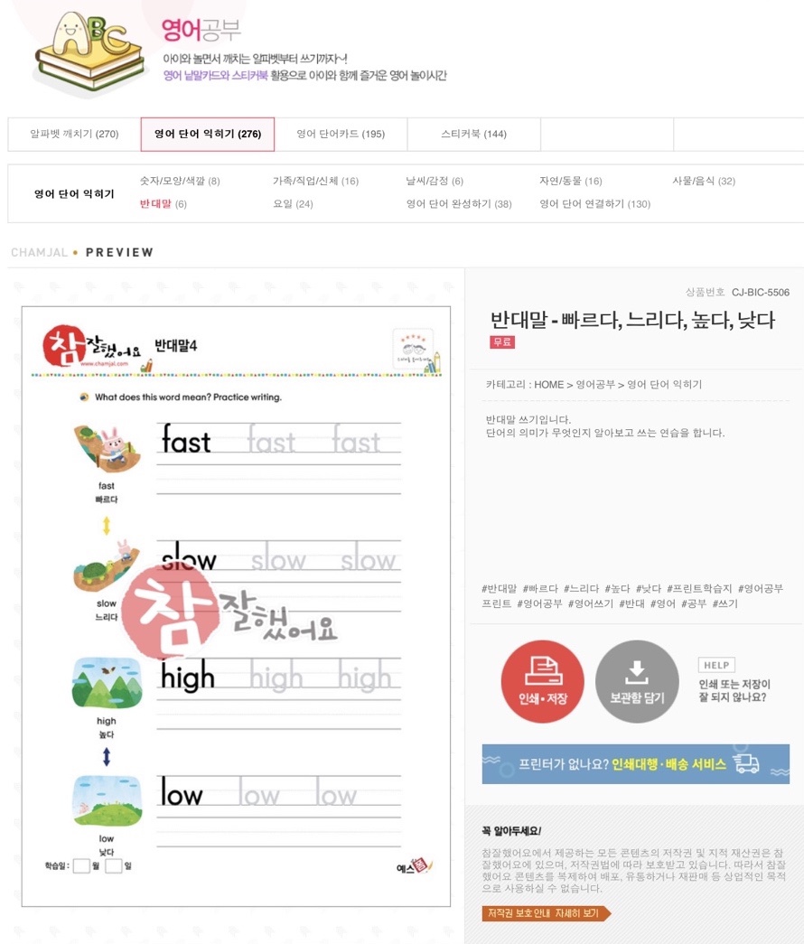 이번에 발견한 참잘했어요 사이트는 엄마와 아이가 학습지 내용을 보고 선택해서 풀어 나갈 수 있는 프린트 학습지에요!인쇄+저장이 함께 되고 국내 최저가 학습지 사이트 라고 하더라구요!