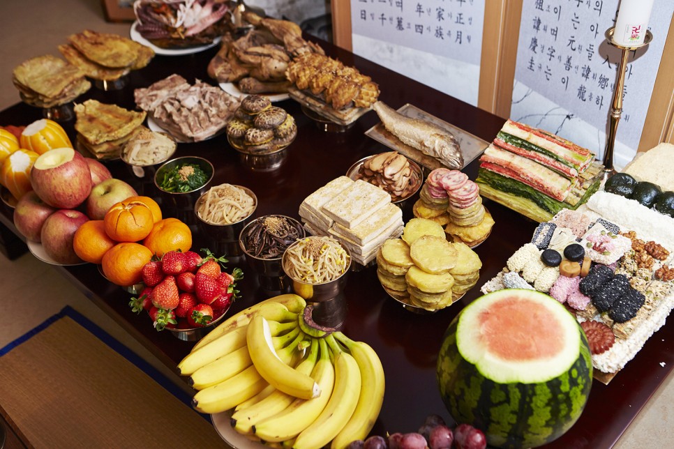 신위 수와 다르게 준비해도 되는 음식은 술잔은 돌려서 사용하며, 간장, 떡, 찌개, 부침개, 생선, 나물, 과일, 두부 등은 한 번에 한상에 차려서 준비하셔도 됩니다.