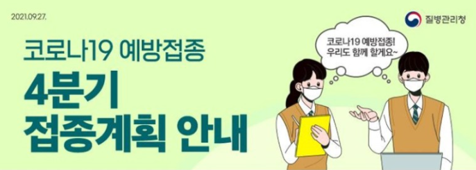 질병관리청에서 4분기 백신 예방접종 계획을 발표 했습니다. 4분기 접종 대상자는 소아청소년, 임산부, 미접종자, 추가접종자(부스터샷)으로 사전 예약 시기는 10월 5일부터 시작되고, 접종시기는 10월 18일부터 시행될 예정입니다. 이번에 대상자인 소아청소년, 임산부, 추가접종자는 ▼아래 사전예약시기, 백신 종류, 사전신청 방법등을 확인하시고 차질없이 접종하시면 좋겠습니다. 코로나 백신 사전예약 홈페이지는 하단에 있습니다.