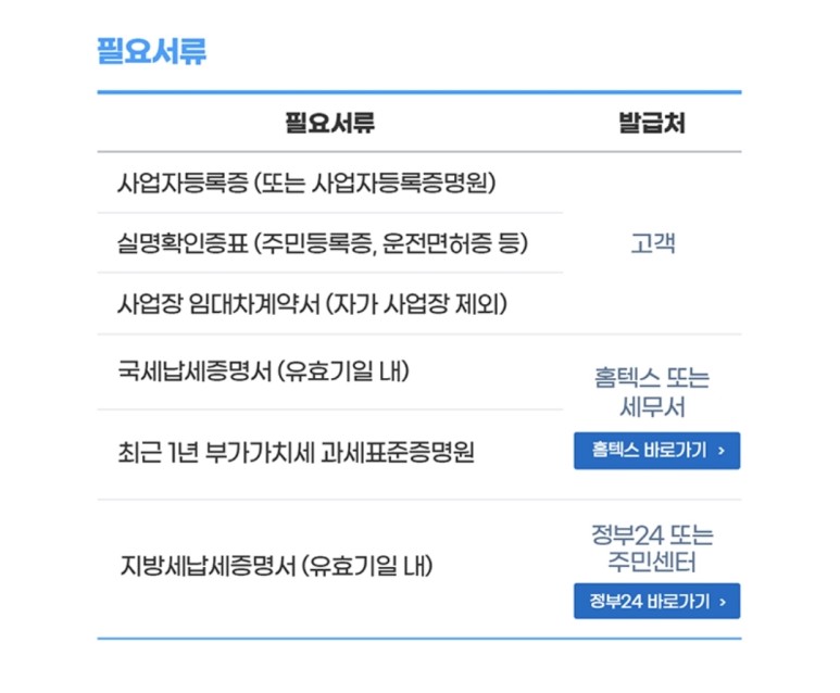 위 서류에서 사업장 임대차 계약서가 필요합니다