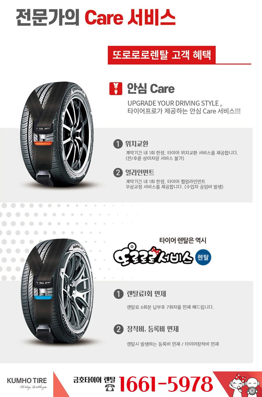 금호타이어렌탈 은 또로로로렌탈 이라고도 하는데 전문가의 케어서비스가 포함되어있는 안심케어 서비스가 진행됩니다.