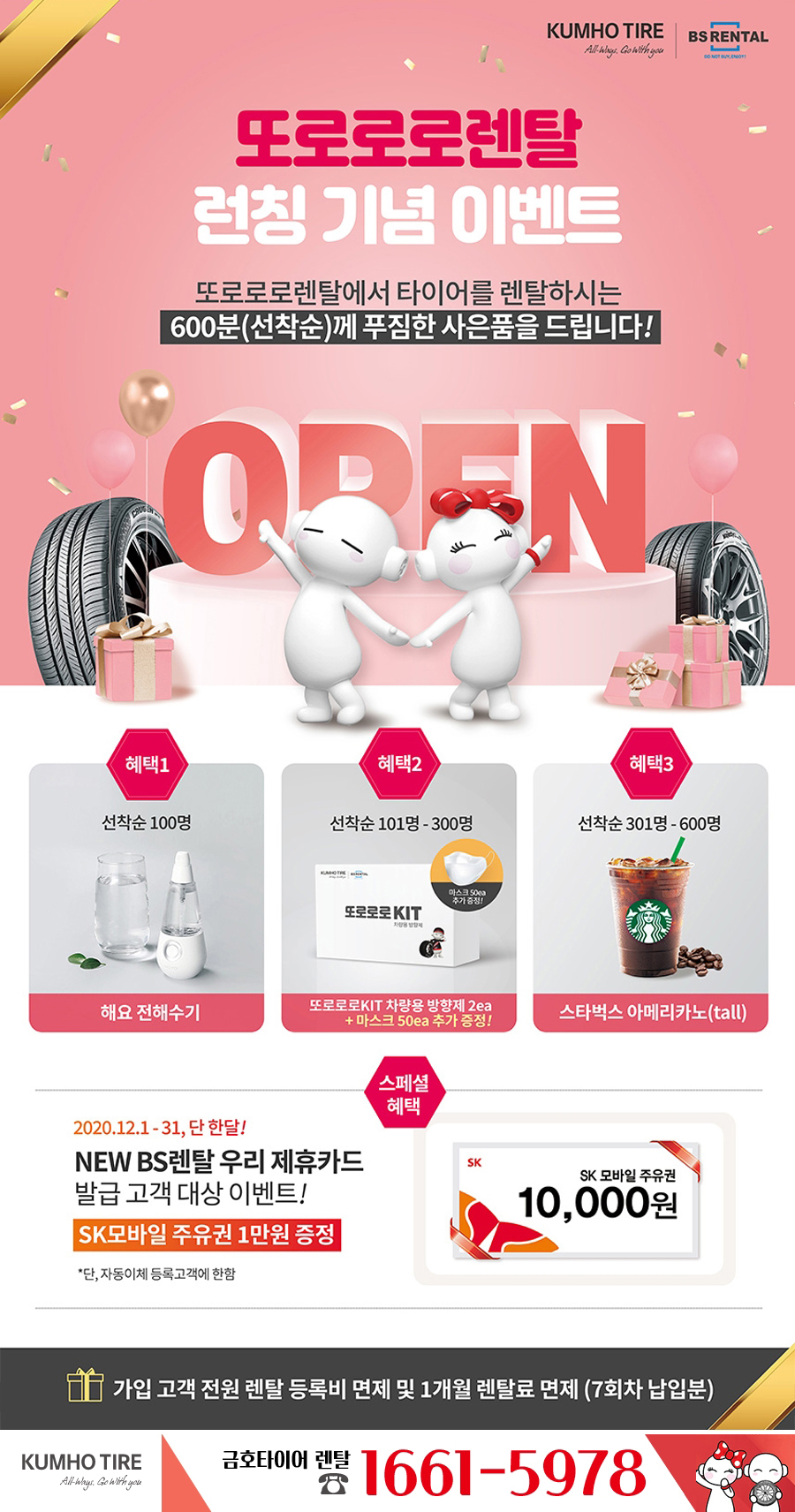 새롭게 금호타이어렌탈 이 런칭됨으로써 현재 오픈기념 이벤트도 진행중이에요 크진않지만 이러한 소소한 이벤트도 놓치기엔 너무너무 아쉽죠? 어차피 타이어교체가 필요한 상황이라면 서둘러서 이벤트 혜택도 받아보시고 타이어 교체도 하시면 좋을듯 합니다. 그리고 스페셜 혜택이라는제휴카드 할인혜택또한 있는데요제휴카드 설명은 아래에서 다시한번 자세하게 설명하도록 할께요 -
