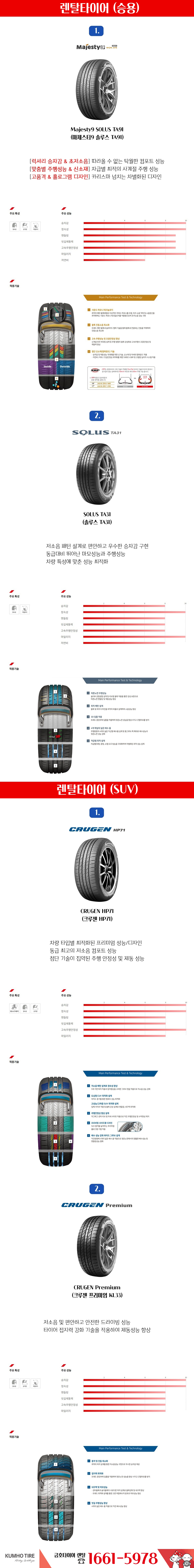 금호타이어렌탈 가격표 에서 보셨던것처럼 타이어 종류가 여러가지가 있죠? 승용차 타이어로는 많이들 들어보셨을법한 최고급형 마제스티 를 포함해 솔루스 타이어 중 선택이 가능해요