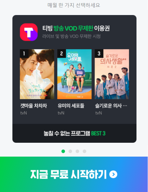 ▼ 아래 티빙 무제한 이용권 받기를 통해